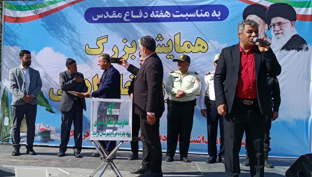 همایش بزرگ پیادهروی خانوادگی به مناسبت هفته دفاع مقدس با حضور محسن خادمی سرپرست اداره ورزش و جوانان و مسئولین شهرستان ،روسای هیات های ورزشی ، مربیان ورزشی و شرکت گسترده اقشار مختلف مردم برگزار شد.