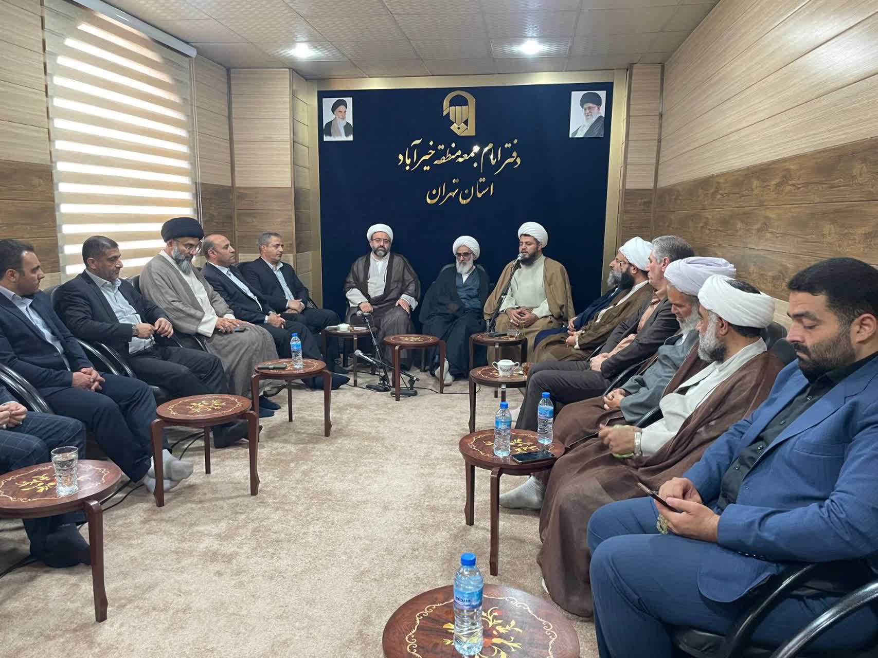 جلسه قرارگاه مشترک فرمانداران، ائمه جمعه و نماینده مجلس شهرستان های قرچک، ورامین و پیشوا با حضور علی محمد اسلامی فرماندار شهرستان قرچک، حجت‌الاسلام والمسلمین اسماعیلی امام جمعه، مدیر دفتر شورای سیاستگذاری ائمه جمعه استان تهران، نماینده مردم شهرستان های قرچک، ورامین و پیشوا در مجلس شورای اسلامی، فرمانداران شهرستان های ورامین، پیشوا و پاکدشت، ائمه جمعه شهرستان های ورامین، پیشوا و پاکدشت و ائمه جمعه خیرآباد، جوادآباد و شریف آباد و سایر مسئولان در محل دفتر امام جمعه خیرآباد برگزار شد و در خصوص مصوبات سفر رياست محترم جمهور و استاندار محترم تهران و مسائل و مشکلات مشترک منطقه گفتگو و تبادل نظر کردند.